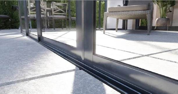 Le système de vitrage Aika est facile à utiliser et fiable. Chaque élément en verre glisse légèrement sur son propre rail, formant une chaîne de vitrages.